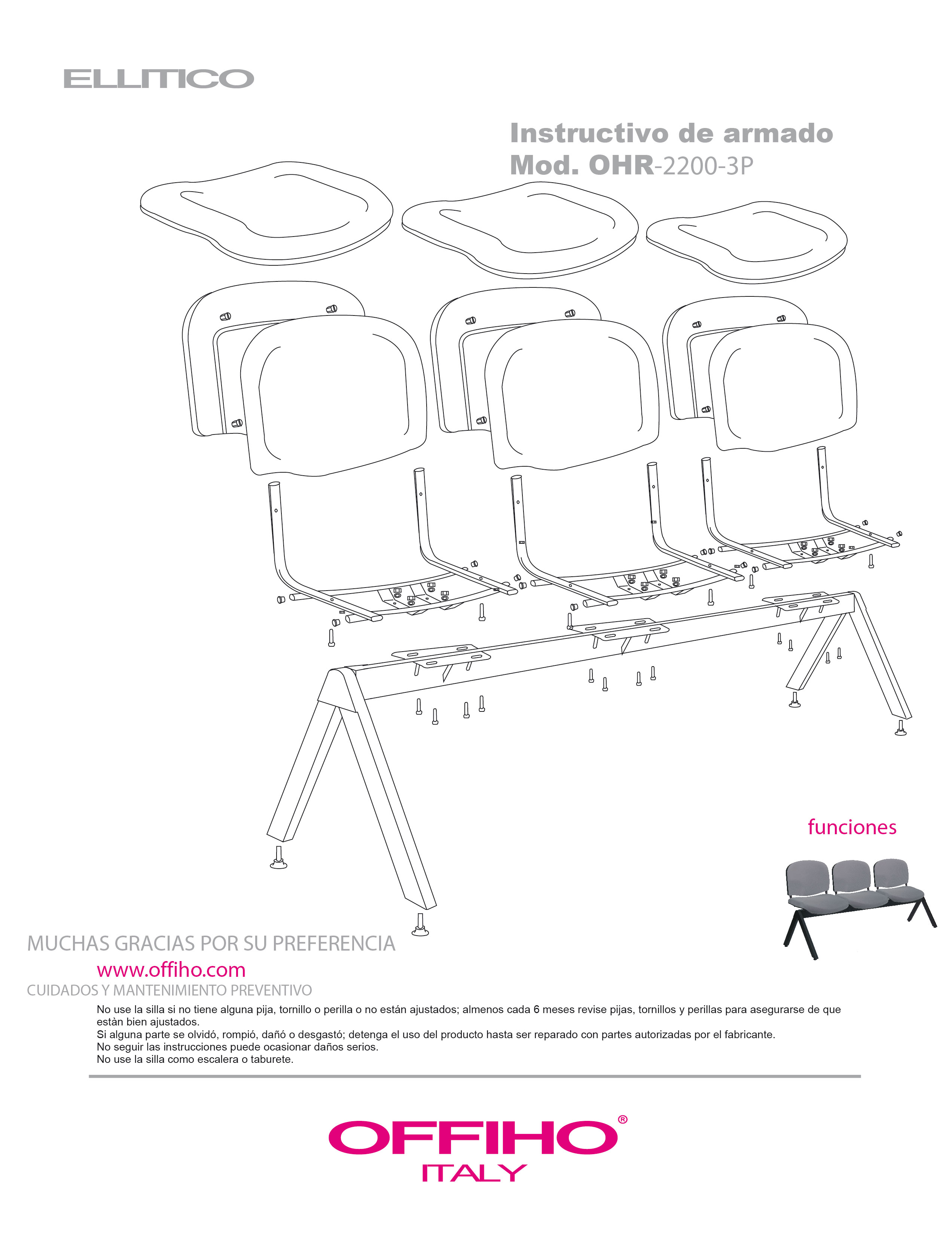de acero tubular rectangular de 1 1/2" X 3", calibre 16, asientos y respaldos de perfil redondo tubular de acero ponchado con travesaños separadores tubulares redondos de acero con acabado de pintura epóxica (electrostática) color negro mate.
