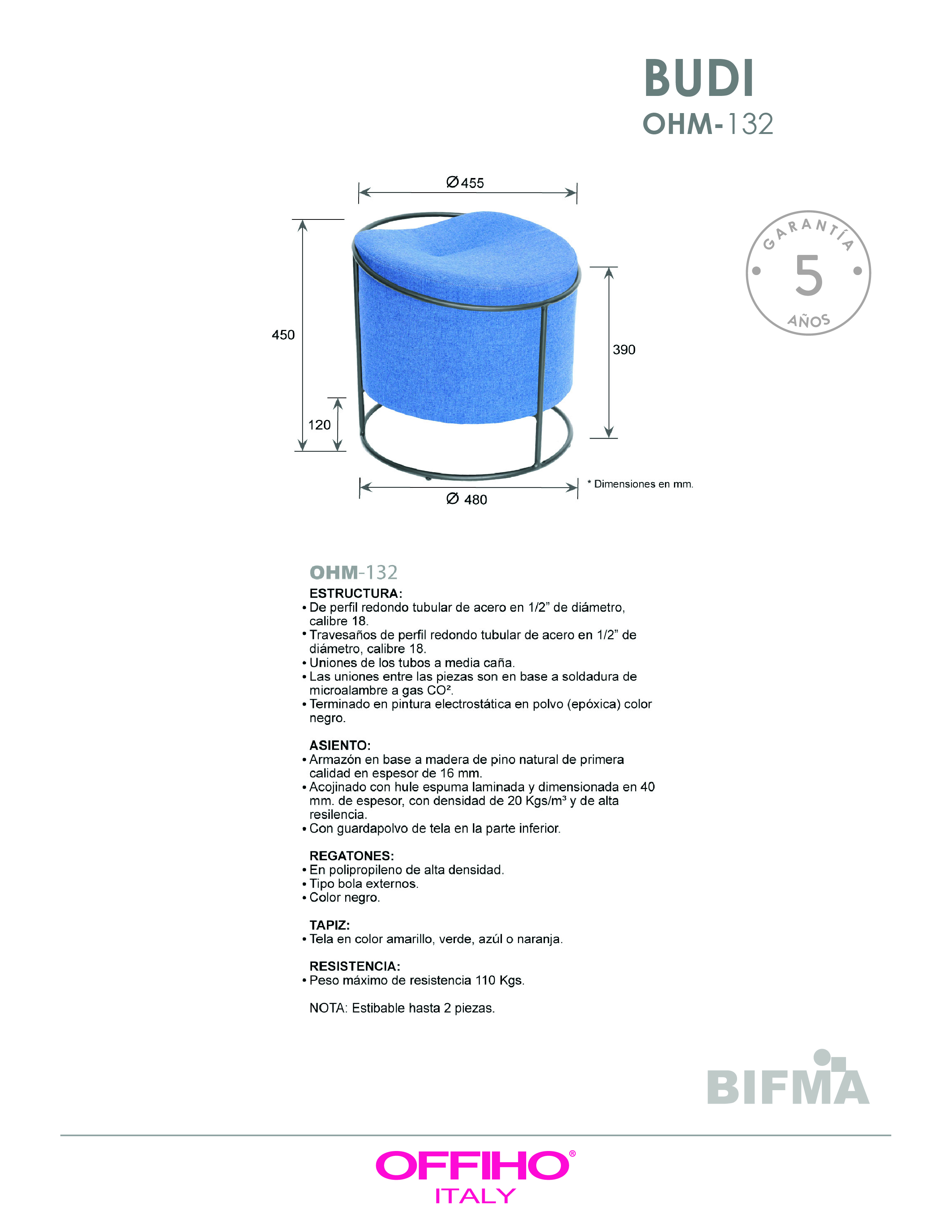 base y armazón en madera de pino de primera calidad, hule espuma laminado flexible con densidad de 20 kgs/m³ y alta resiliencia.