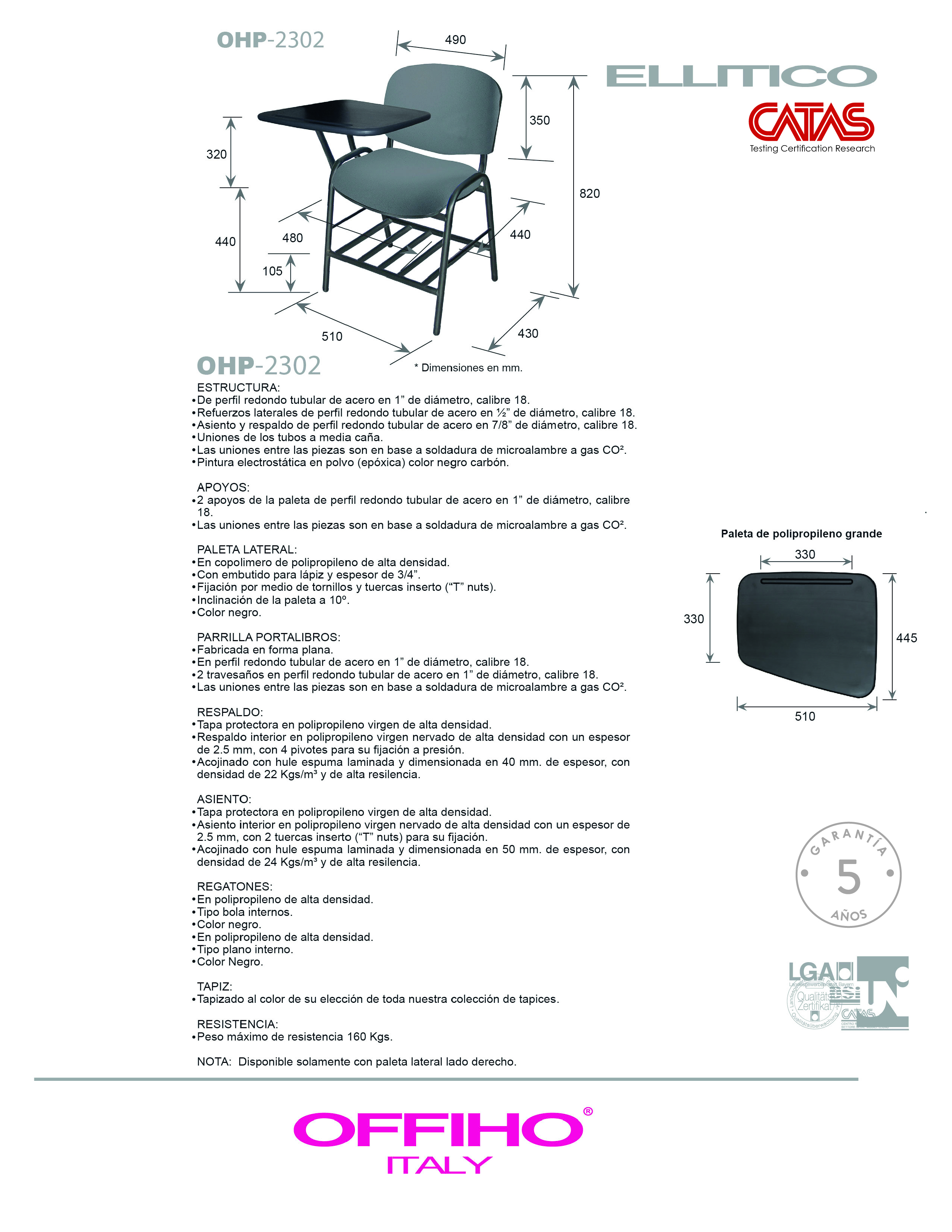 hule espuma laminado flexible con densidad de 22 kgs/m3 en el respaldo y 24 kgs/m3 en el asiento y alta resiliencia.