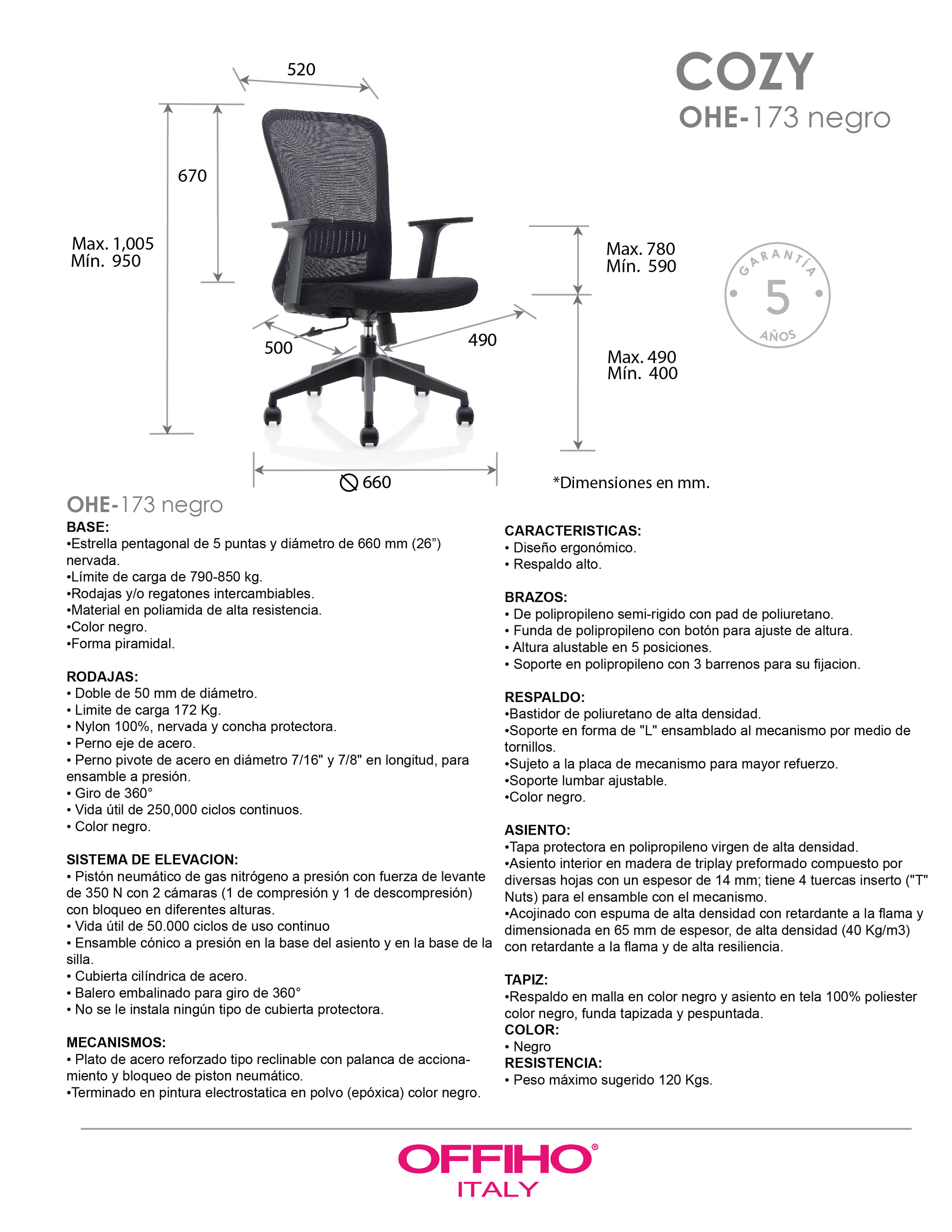 respaldo de malla de color negro y asiento en tela 100% POLIESTER COLOR NEGRO, FUNDA TAPIZADA Y PESPUNTADA.