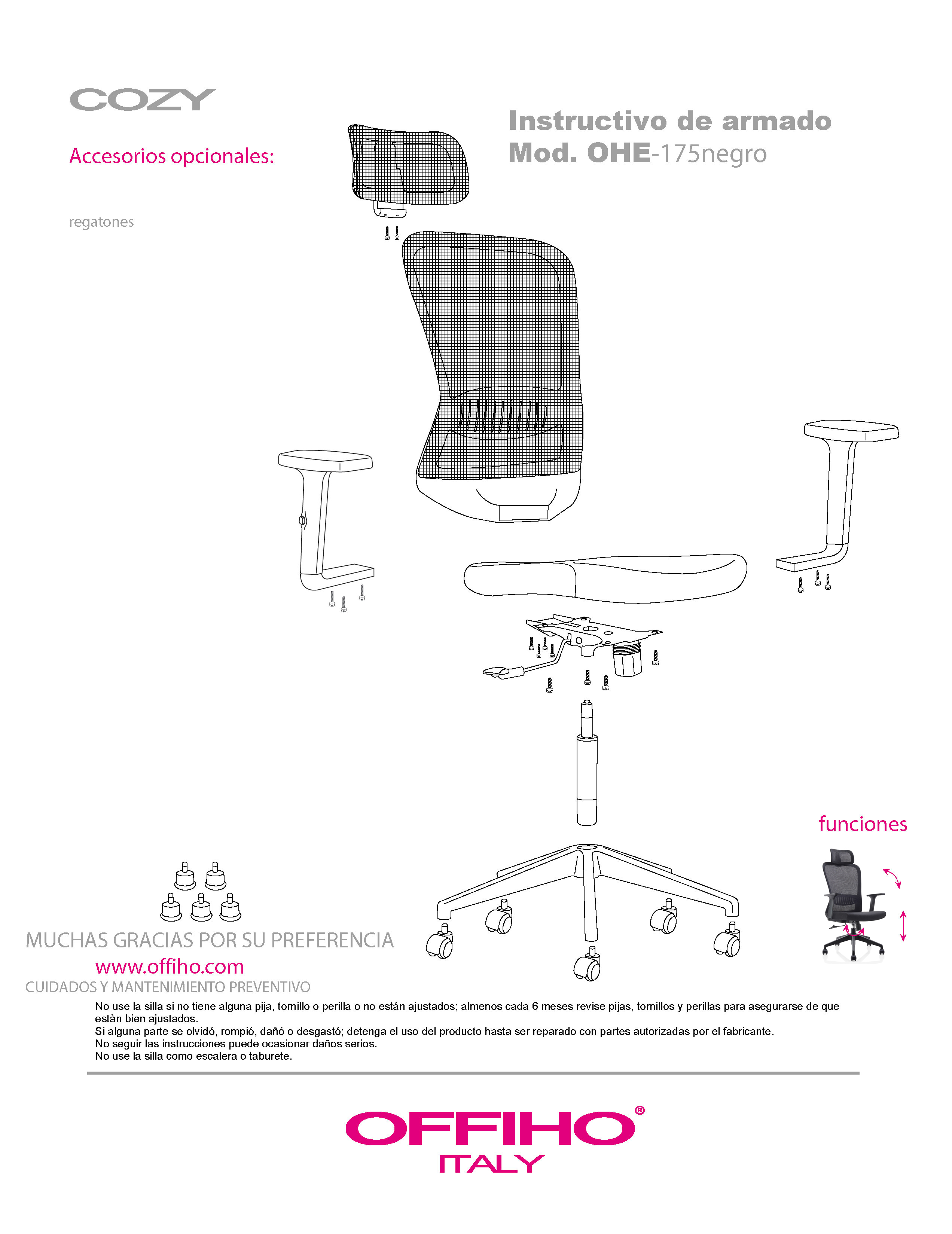 de polipropileno semi-rígido con pad de poliuretano, ajustables de 5 posiciones.