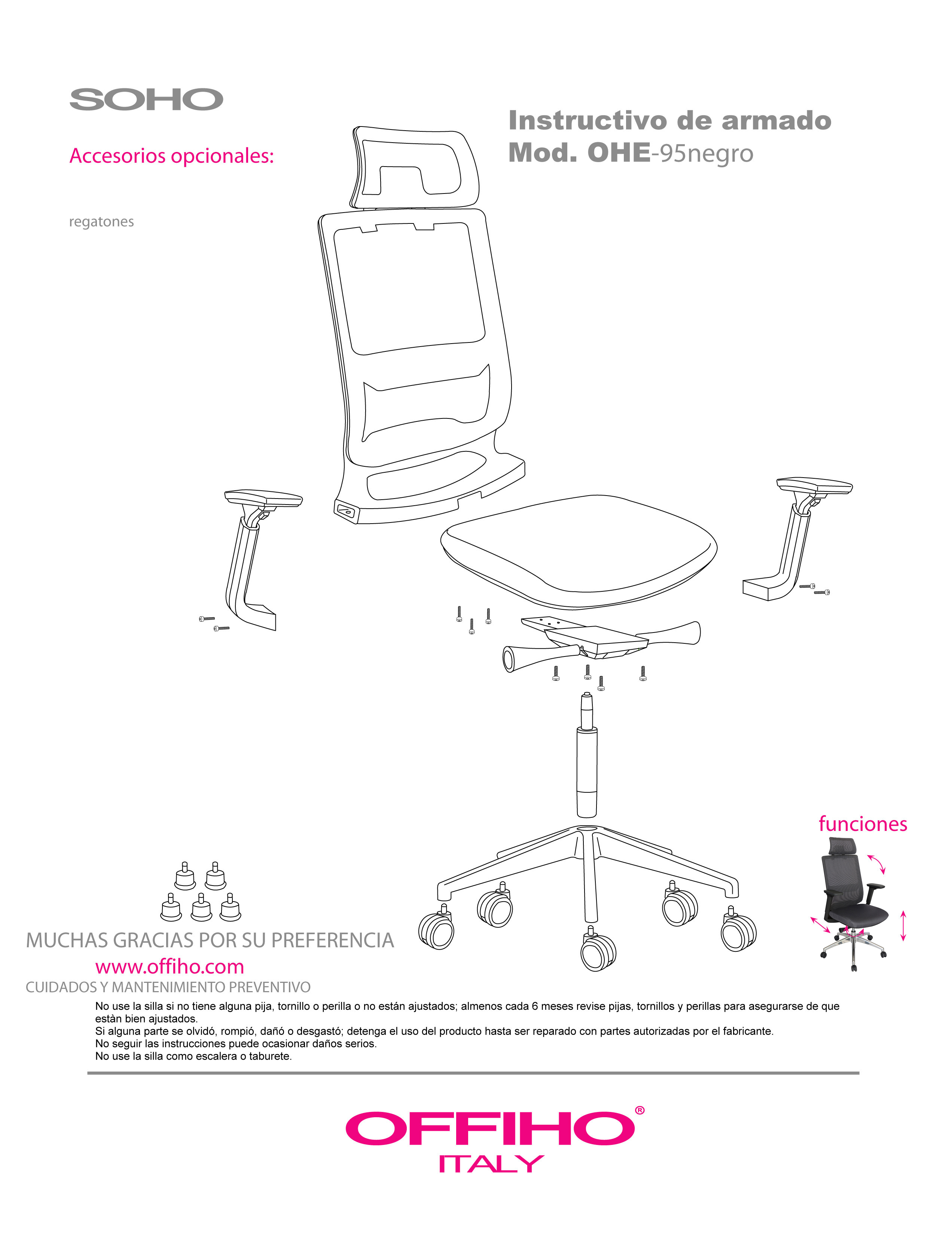 de acero reforzado tipo articulado synchro con anti-shock, palanca para accionar pistón neumático y palanca de bloqueo del ángulo del respaldo, asiento slider con botón para el accionamiento.