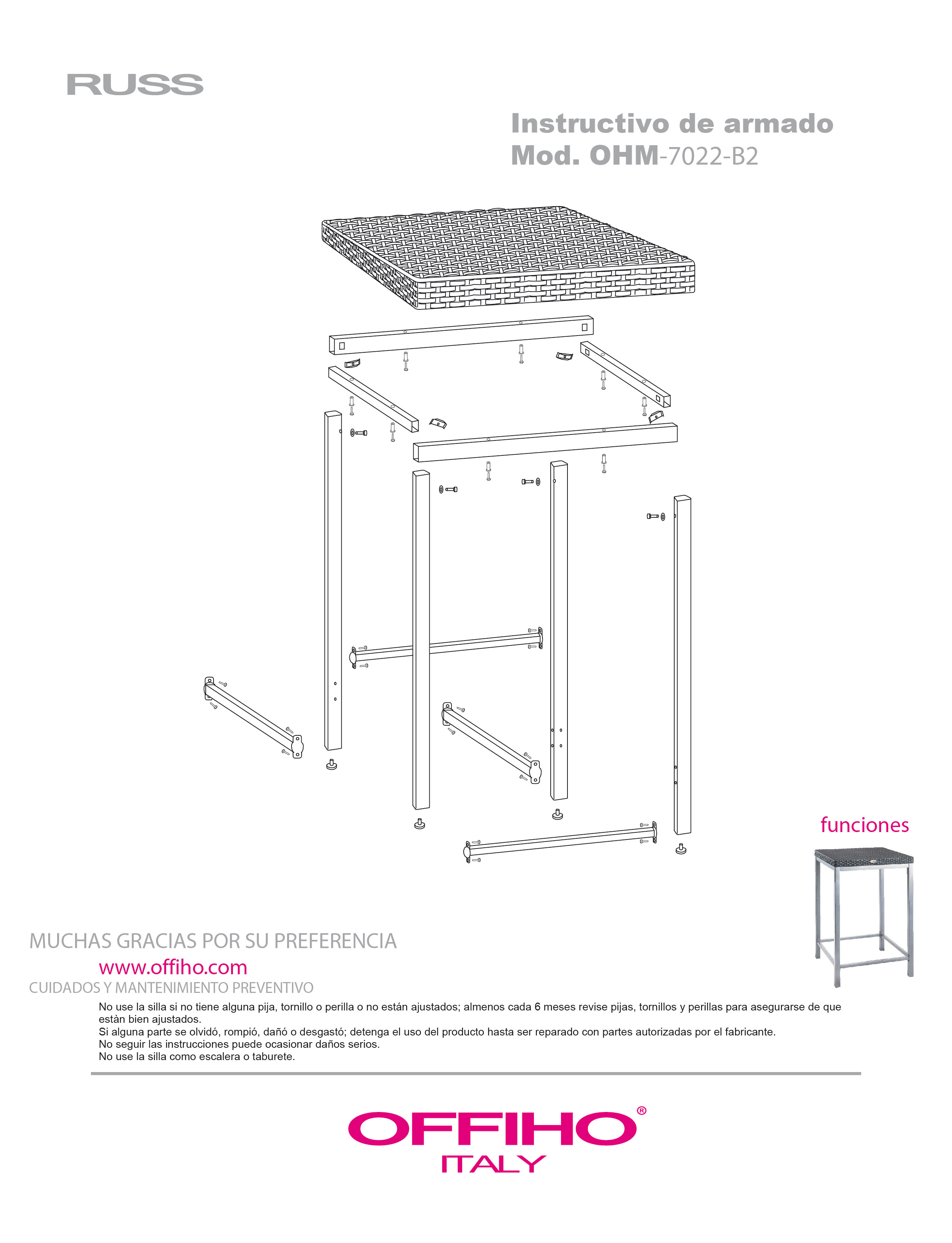 De perfil cuadrado tubular de aluminio, travesaños de perfil rectangular tubular de aluminio y separador de perfil redondo tubular de aluminio. Tratamiento anodizado y terminado natural.